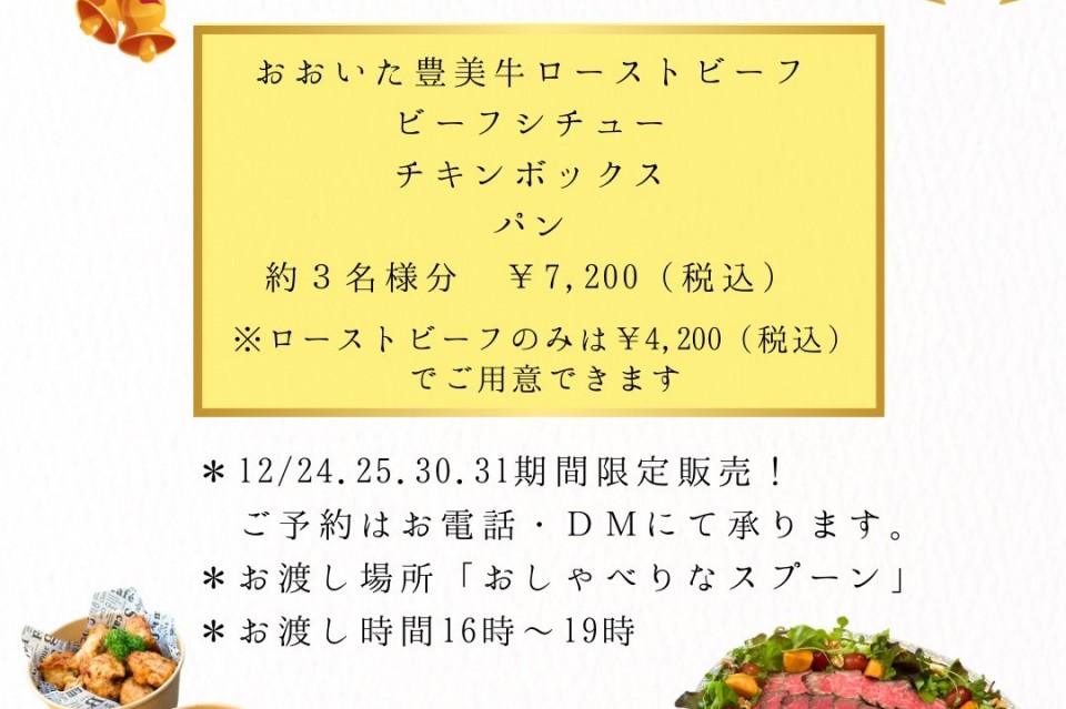 おおいた豊美牛クリスマス&年末オードブルのお知らせ!